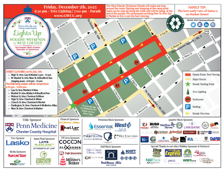 Media's Santa Parade, Fun Run/Walk & Block Party returns Sunday, November 30, 2025, for a day of holiday festivities in "Everybody's Hometown." The free, family-friendly celebration begins with a block party at 2:30 PM in Veterans Square, followed by a costume contest at 4:00 PM, an untimed fun run/walk at 4:15 PM, and Santa's Parade down State Street at 5:00 PM featuring Mummers, musicians, classic cars, and of course, the big man in red himself. Bring a food donation for Media Food Bank or an unwrapped toy for Toys for Tots to participate in this beloved Delaware County tradition.